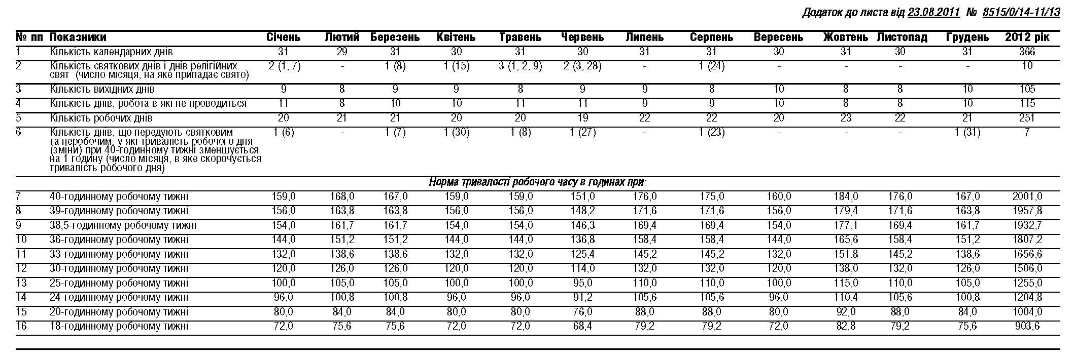 Документи для роботи 43 :: Про розрахунок норми тривалост робочого часу на 2007 рк
